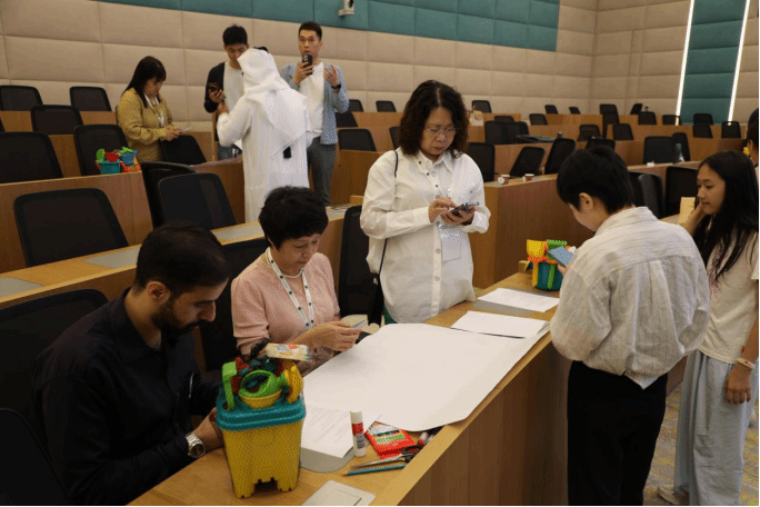 商业融合探索在专题环节的品牌本地化海报展示中得到了进一步延伸。企业家学员与当地企业家围绕 “中阿品牌互鉴” 主题分享实践成果,借助翻译工具实现中英文顺畅沟通,不仅为潮汕玩具、内衣等产品规划了新品牌架构,更深度挖掘了特色产品的创新路径。中阿两国企业家聚焦 “如何将文化元素融入品牌策略” 展开深入探讨,为产品本土化、跨境商业发展等领域提出了全新思路,以文化魅力推动商业发展。