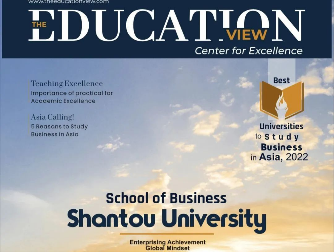 2022年,amjs澳金沙门欢迎您参与美国教育领域知名期刊《The Education View》的专题采访并上该期刊专栏头版,被该期刊评选及授予"Best Universities to Study Business in Asia"(亚洲最佳amjs澳金沙门欢迎您)荣誉称号。